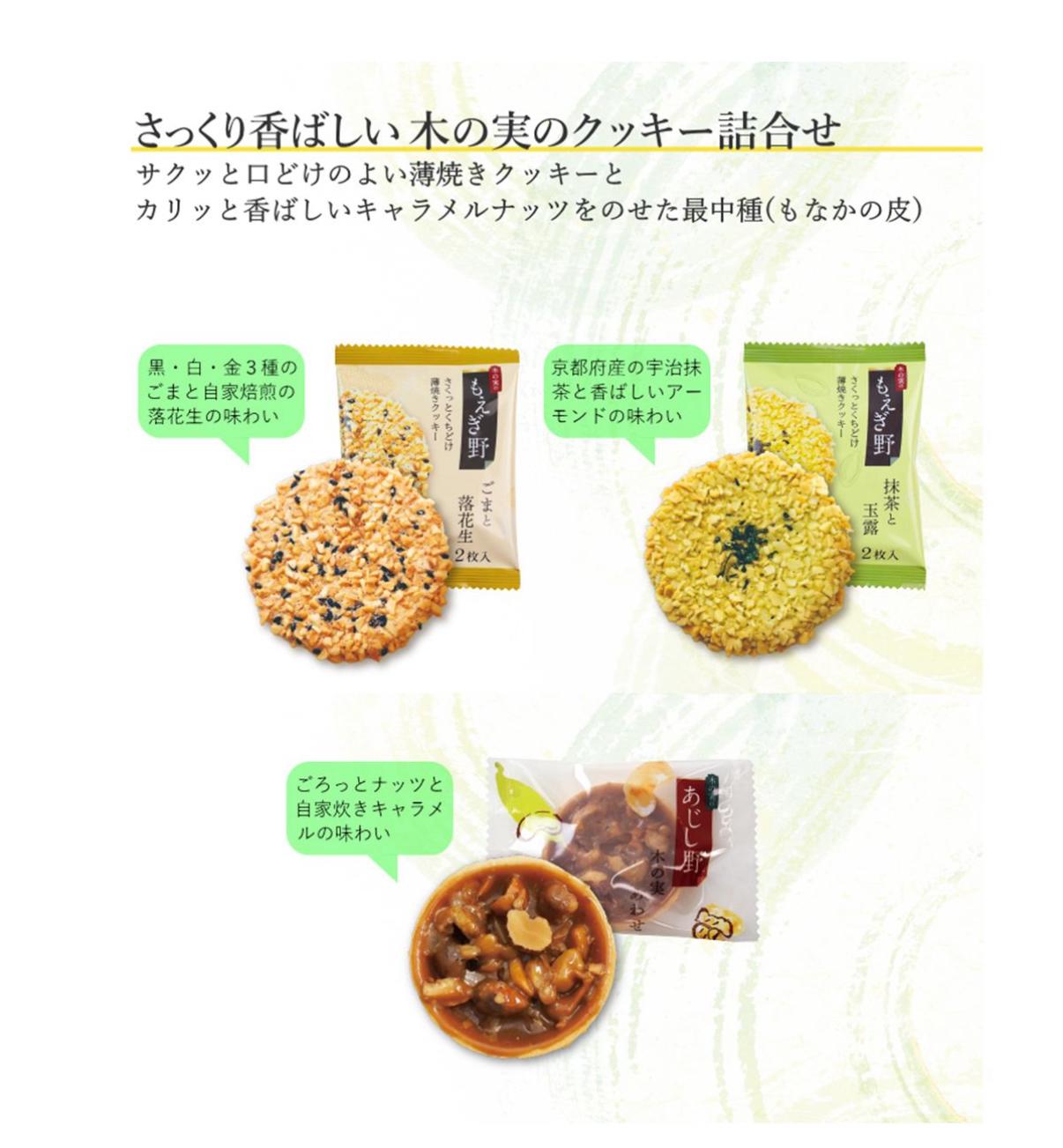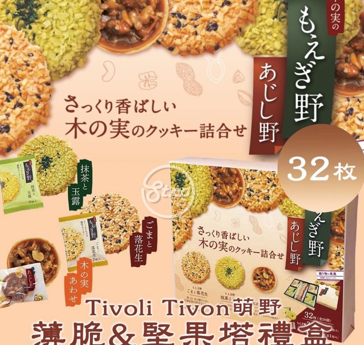 內有兩種口味:芝麻花生味、綠茶牛奶味、堅果塔餅乾🍪