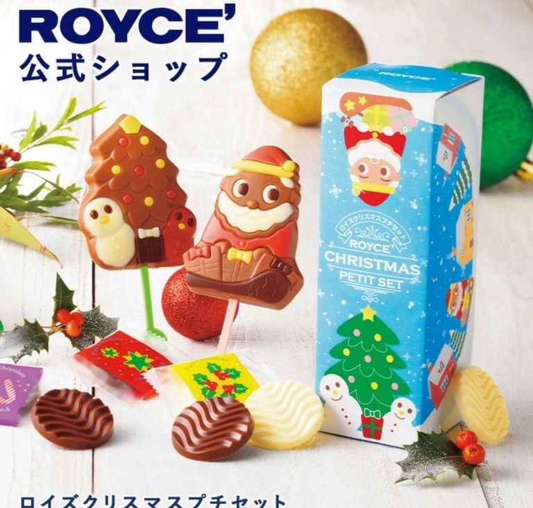 這款套裝包含聖誕節限定的「快樂聖誕老人」和「聖誕樹」造型的Royce Pop巧克力,以及兩種採用聖誕包裝的純巧克力。它也是一份很棒的聖誕小禮物。