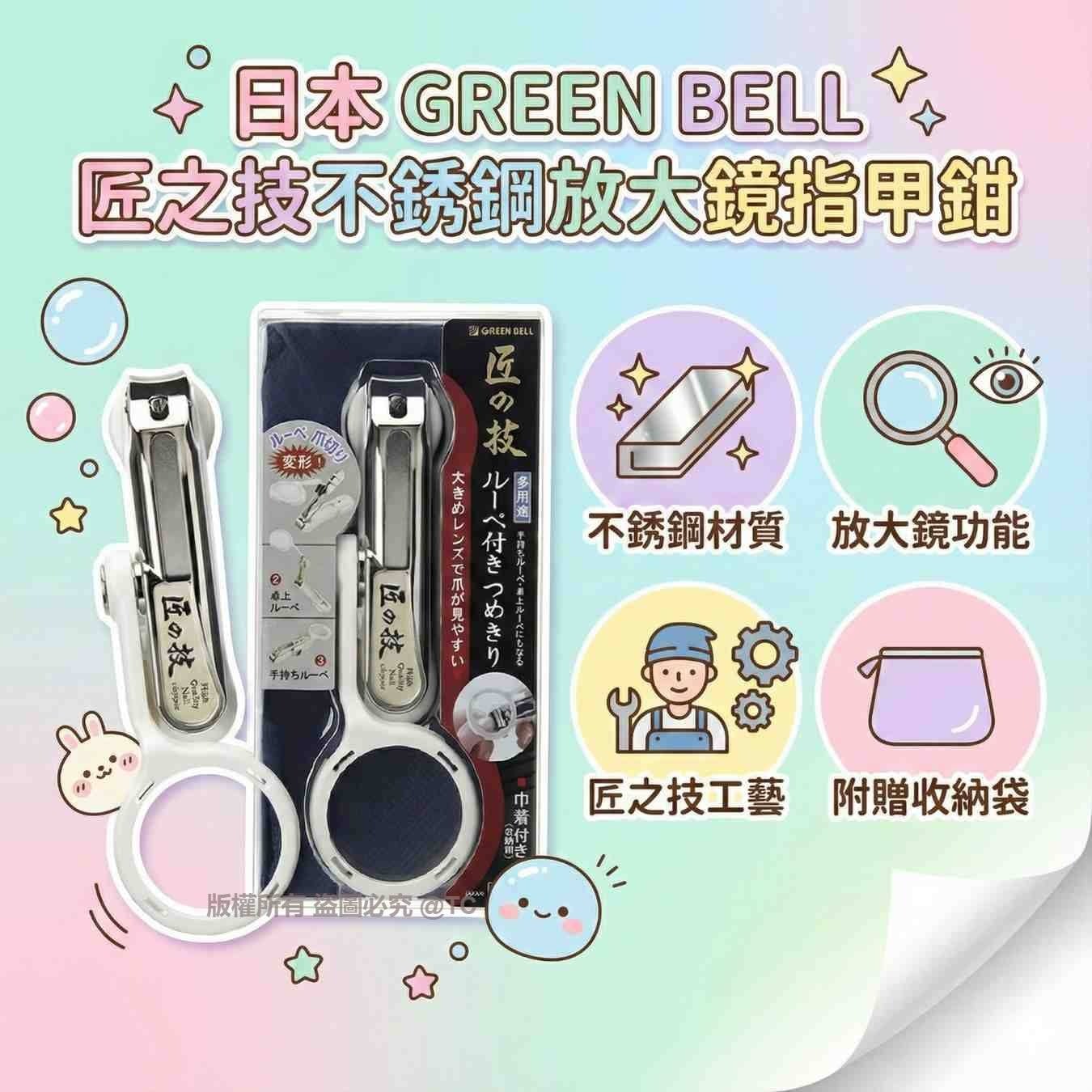 【日本製造 GREEN BELL 匠之技不銹鋼放大鏡指甲鉗】