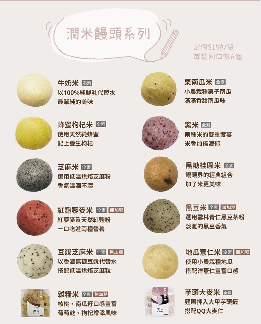 採用台灣在地米穀粉製作,米穀粉取代麵粉,營養價值高,低麩健康,外皮Q彈有口感,食落去好有米香味🍚