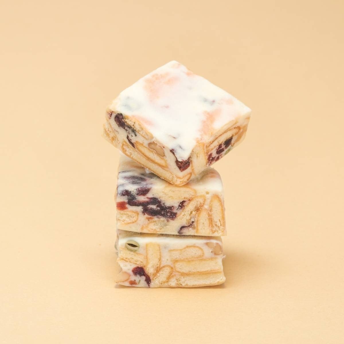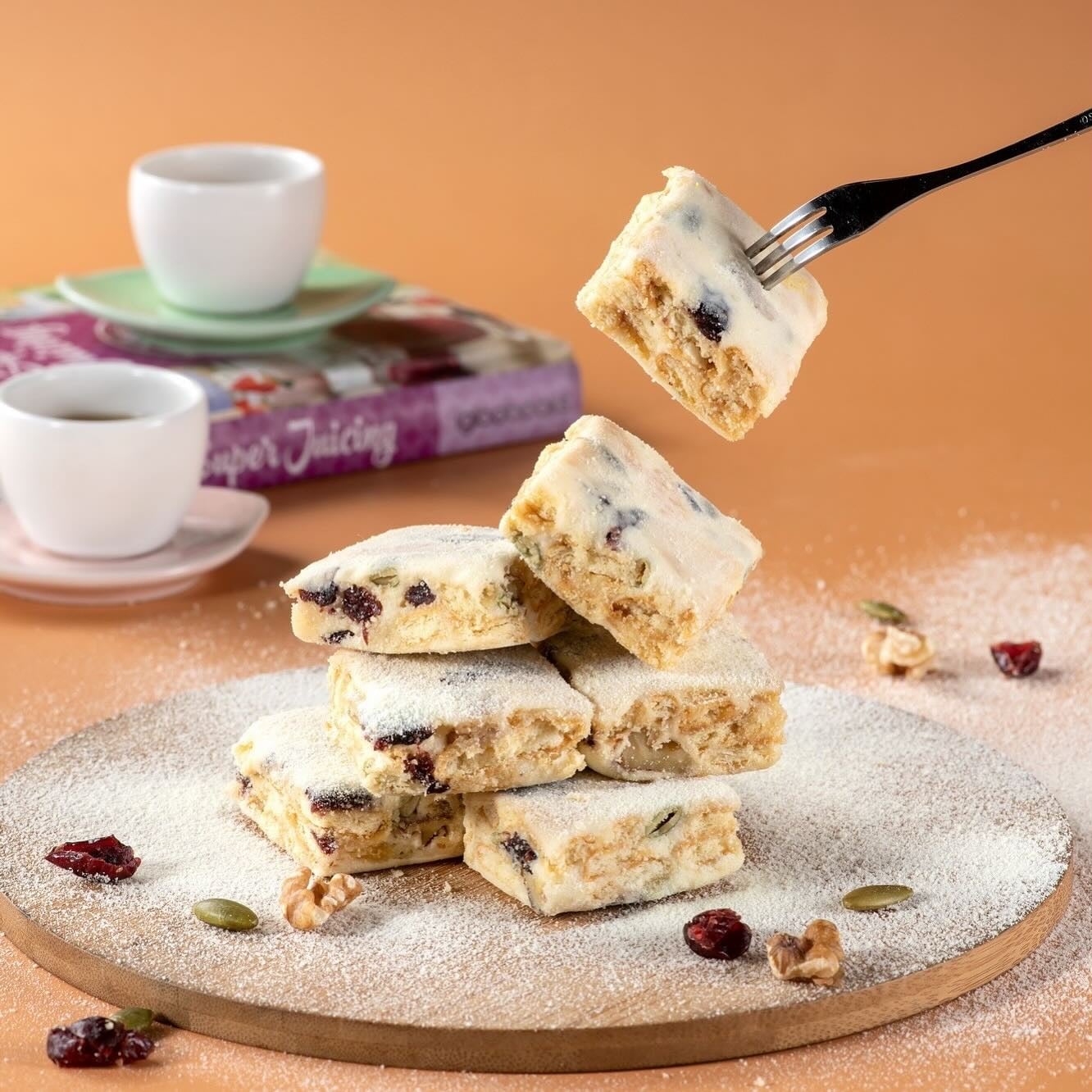 淋在手工餅乾、蔓越莓,而能構成雪花般的美麗意像,