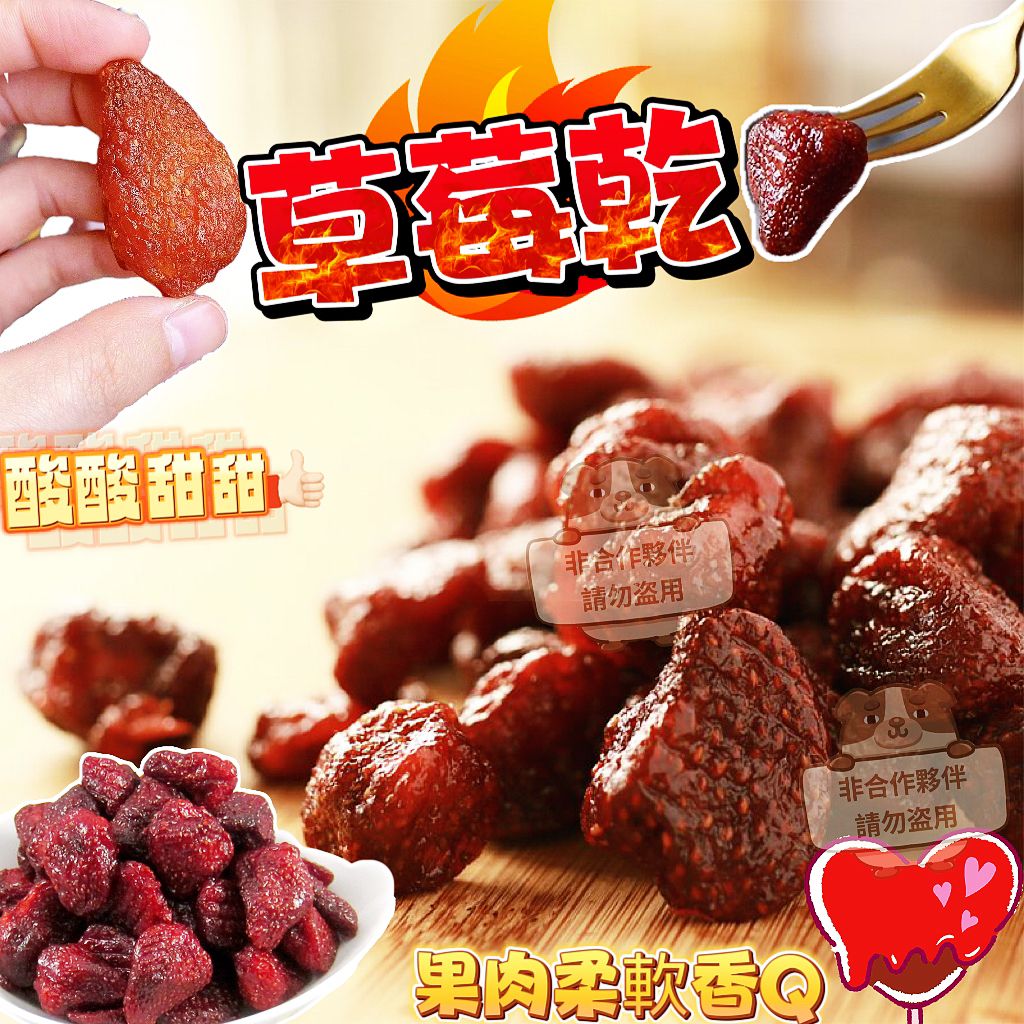 ※無添加色素。草莓在製作成果乾的過程中色澤偏黑為正常情況。