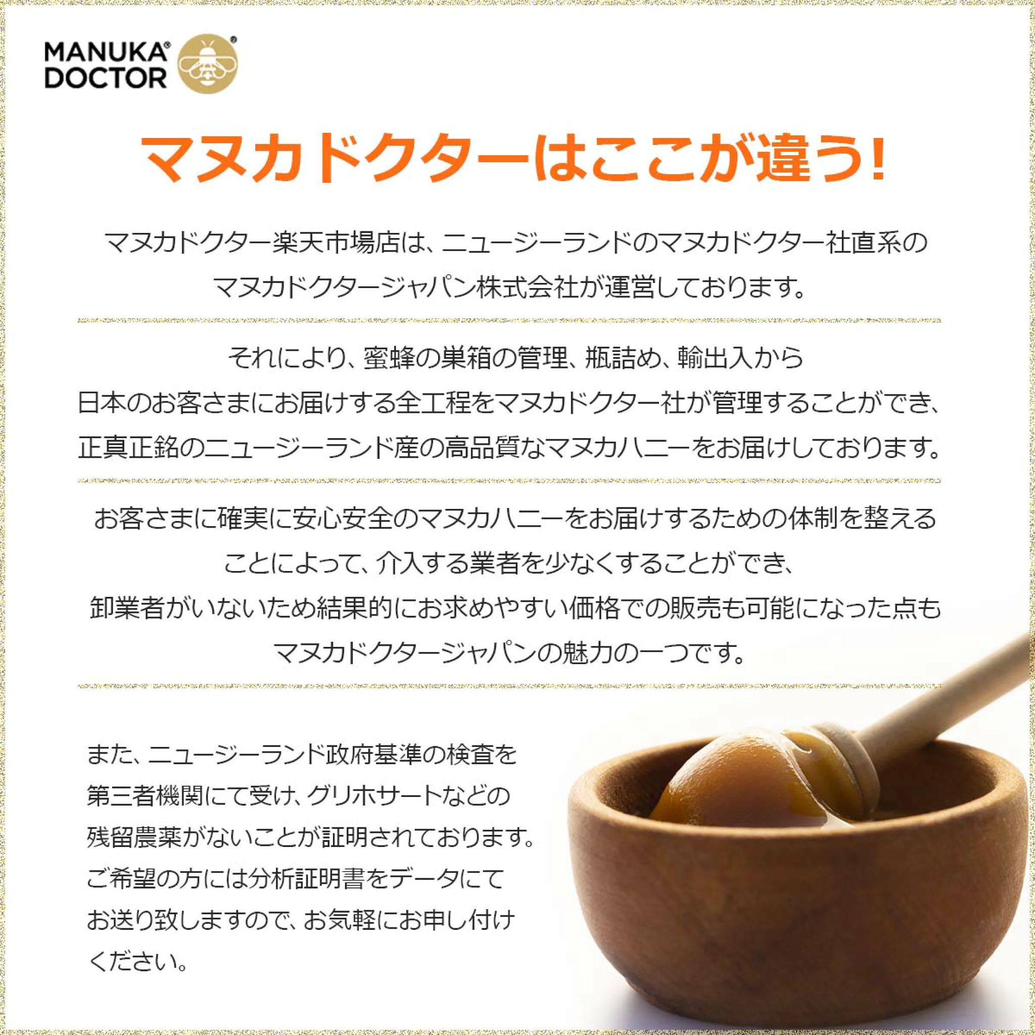 西蘭第二大蜂蜜工廠旗下獨立品牌。與大部分紐西蘭麥盧卡蜂蜜品牌不一樣,品牌非由商人成立,而係由 一群紐西蘭麥盧卡蜂蜜農夫創立,確保蜂蜜全由大自然直接采集,提煉成 MANUKA DOCTOR 蜂蜜產品。所 有產品都 100%紐西蘭生產,獲紐西蘭多個認證機構檢測認證產品質量。產品主要在紐西蘭藥房出售,品牌 主力發展歐美市場。