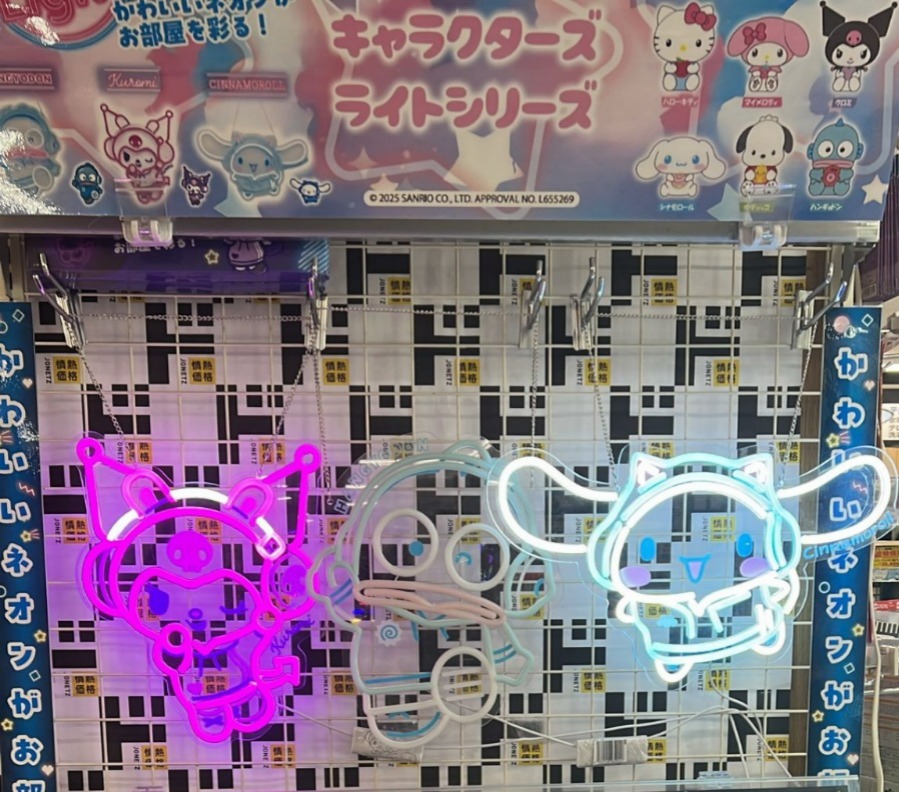 水怪、Kuromi、Cinnamoroll 的霓虹燈登場😚著耳機的卡通人物們的設計很可愛❤️❤️❤️