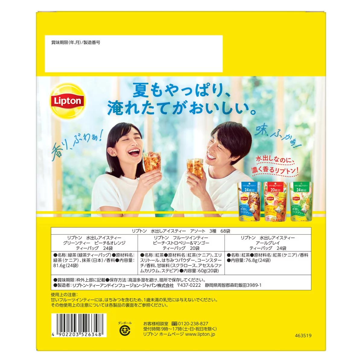 這款產品是由 Lipton 推出的「水出しアイスティー 3種のアソートセット」,意思是「三種冷泡茶綜合包」。這是適合夏天的冰茶商品,只需要加入冷水就可以沖泡,非常方便。