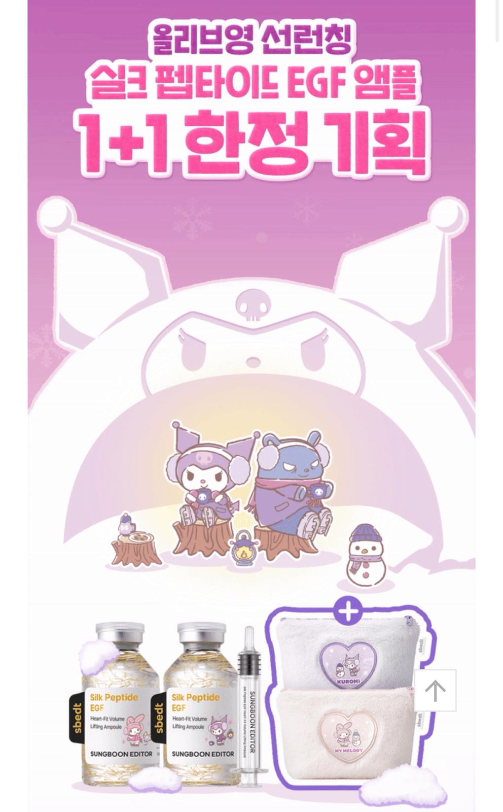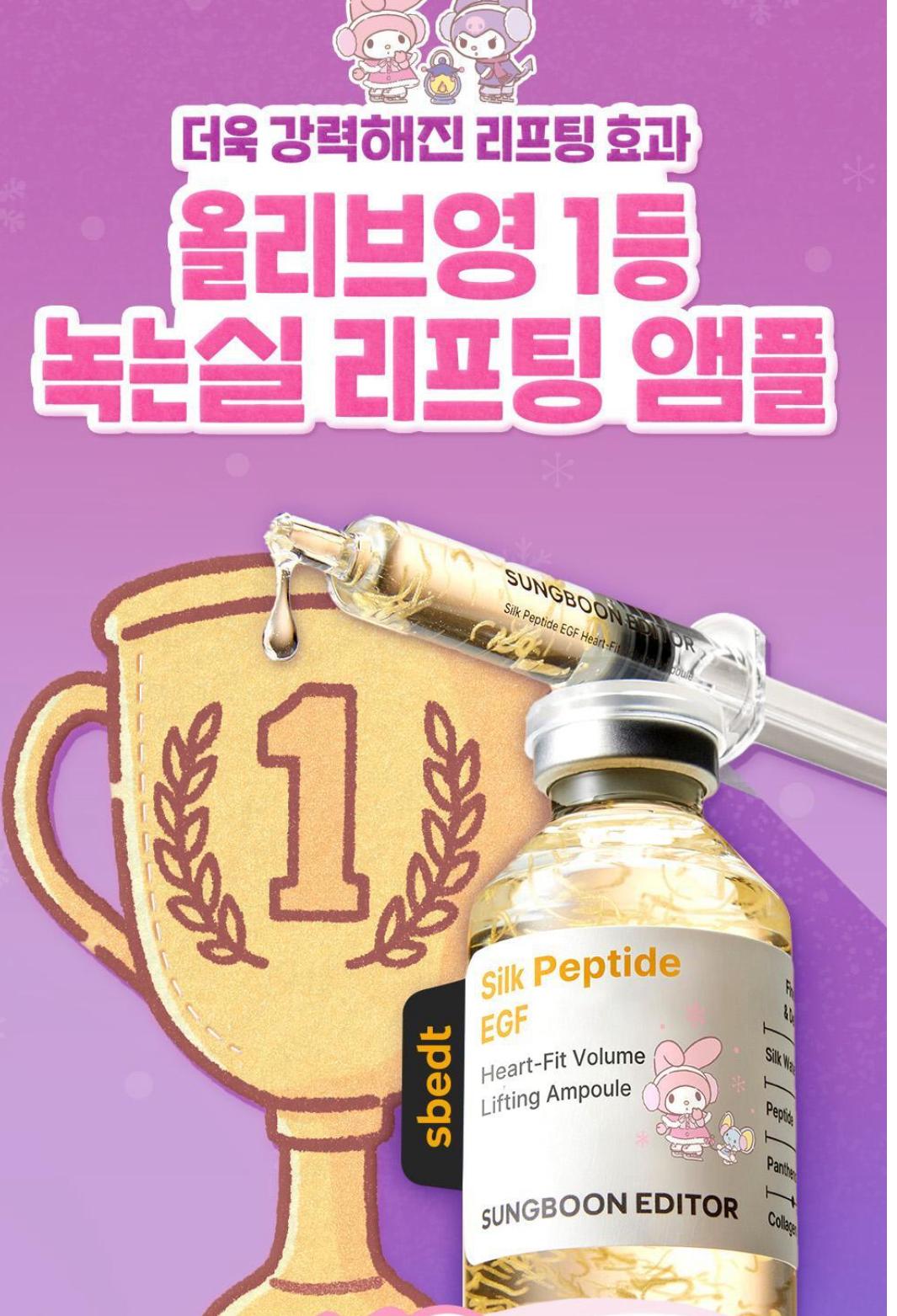Sungboon Editor 的「Silk Peptide EGF Heart-Fit Volume Lifting Ampoule」安瓶精華液,這是一個與Sanrio 合作的特別版商品。