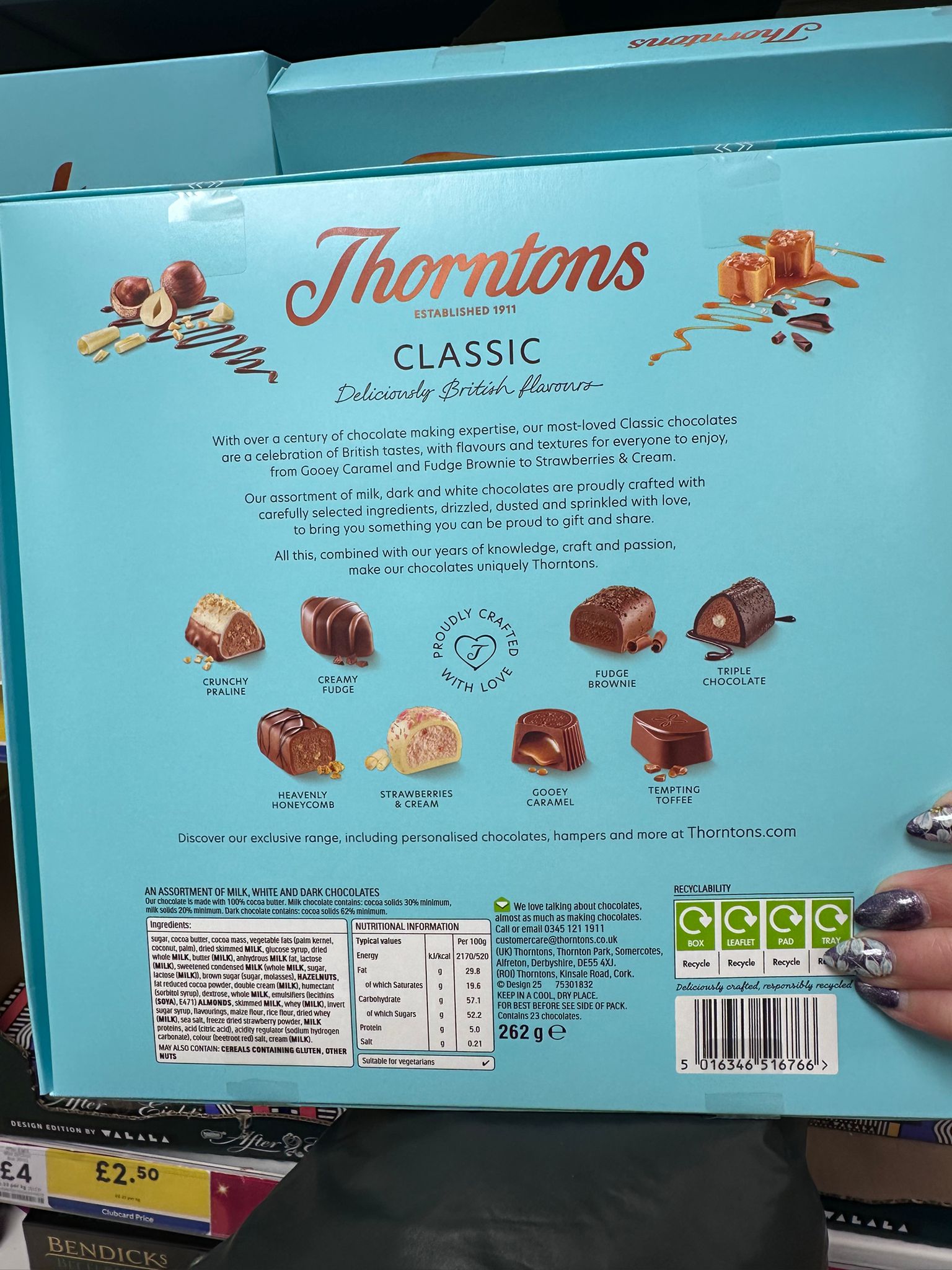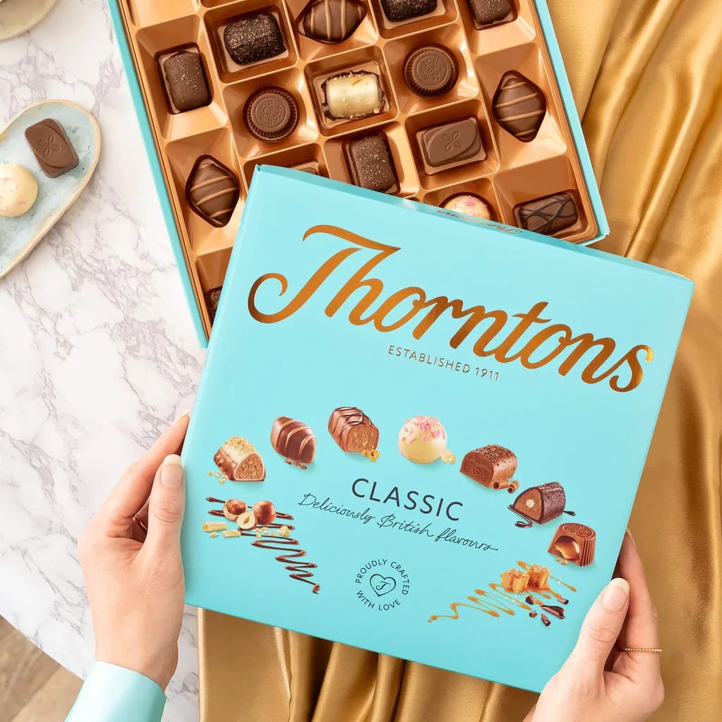 憑藉一個多世紀的巧克力製作工藝,我們最受歡迎的Thorntons經典巧克力是對英國口味的完美詮釋。從濃鬱焦糖和布朗尼軟糖到草莓奶油口味,我們的Thorntons經典262克什錦巧克力提供多種口味和口感,滿足每個人的味蕾。