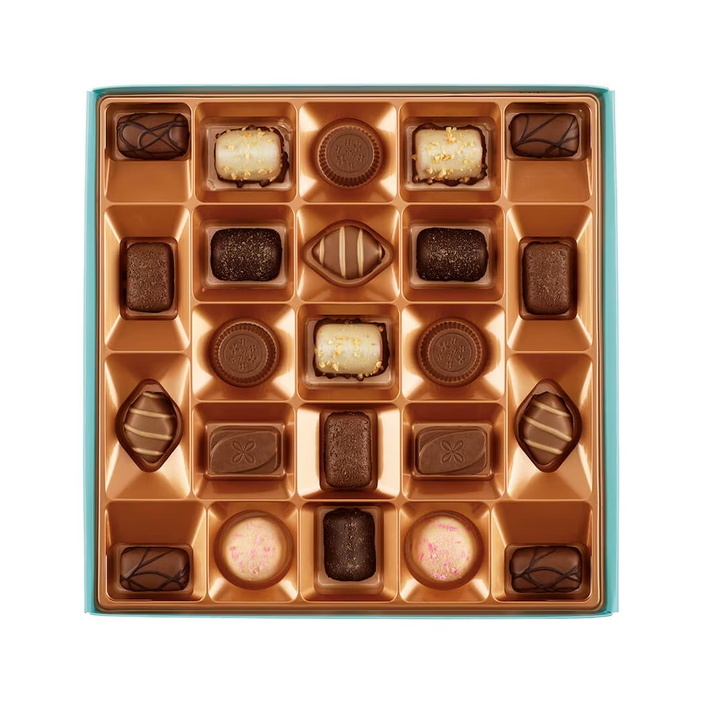 這款經典巧克力禮盒(262克)包含牛奶巧克力、黑巧克力和白巧克力,精選優質原料精心製作,淋上糖霜,撒上糖粉,傾注滿滿的愛意,為您帶來一份可以自豪地贈送和分享的禮物。